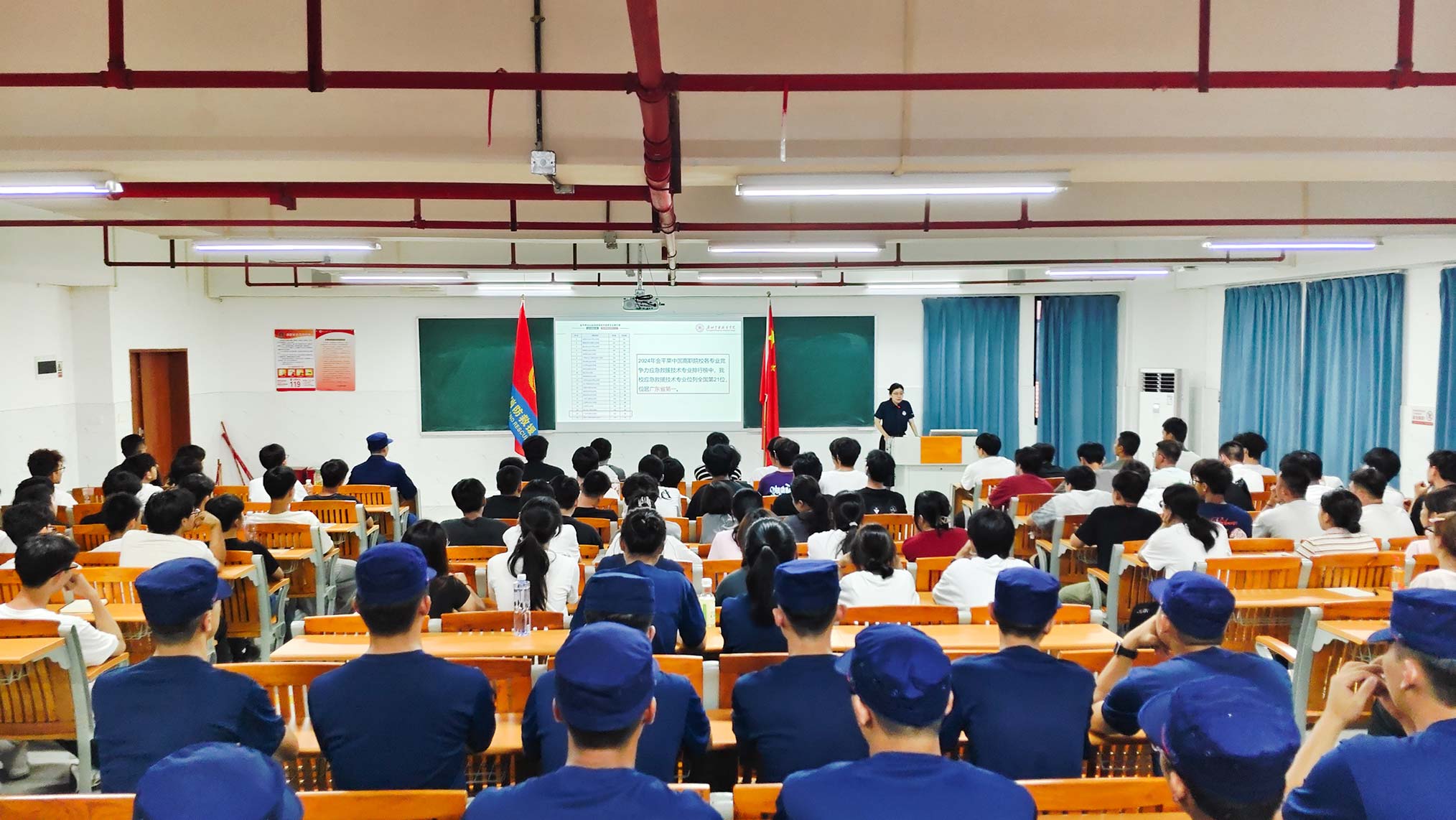 9月14日晚,产学研楼D502教室灯火通明,气氛热烈而庄重,2025级应急救援技术专业新生入学教育大会在此隆重举行。