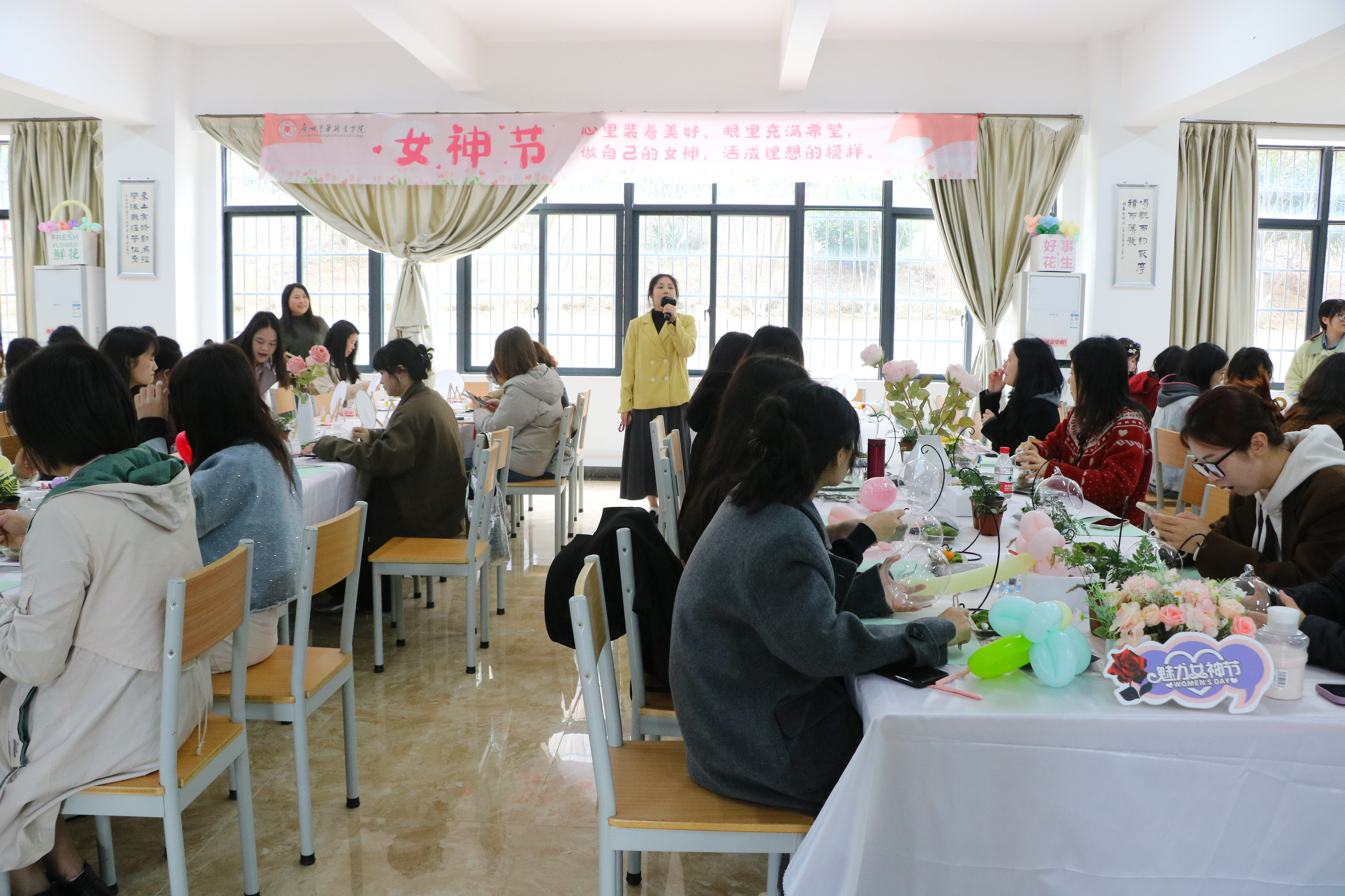 为充分展现学校对女性教职工的关爱增加女性教职工的认同感、归属感和幸福感,3月8日上午,今年会官网在综合楼1楼举办“花漾女神 魅力绽放”系列活动,活动包括微型景观制作与永生花团扇制作。