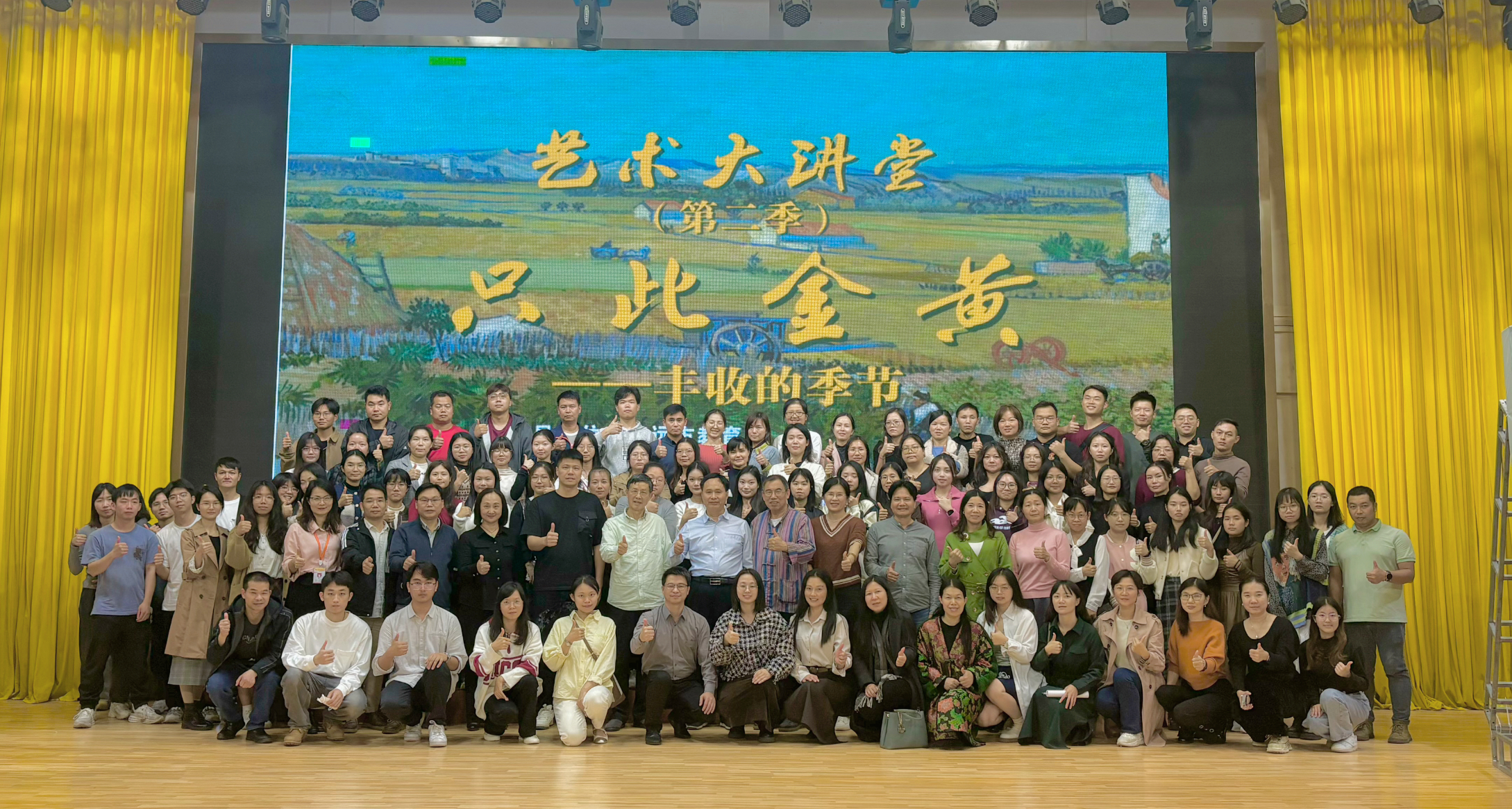 校艺术传媒学院院长李于昆教授受邀出席参加广东省基础教育美术教研基地(清远)第三轮全科美育教师培训活动,并在“只此金黄”艺术大讲堂上,以梵高《丰收》作品为讲座的主题,深度剖析梵高绘画作品的艺术性、传奇性、传播性逐步形成中国化的过程原因。
