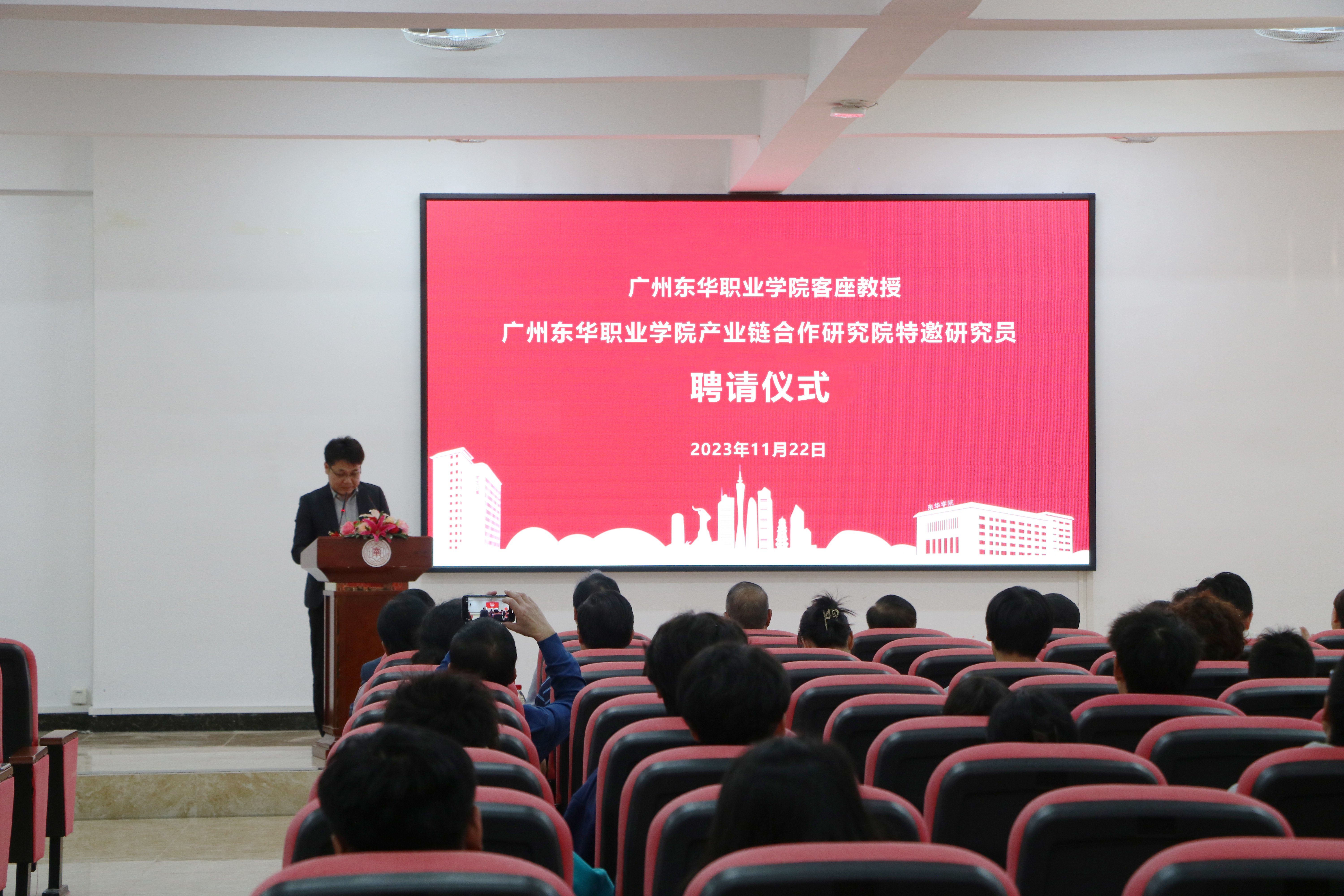 11月22日下午,今年会举行客座教授暨产业链合作研究院特邀研究员聘请仪式。董事长古惠南、全体校领导、二级学院院长、各专业负责人、系主任及相关职能部门负责人、学生代表参加。仪式由副校长温志宏主持。