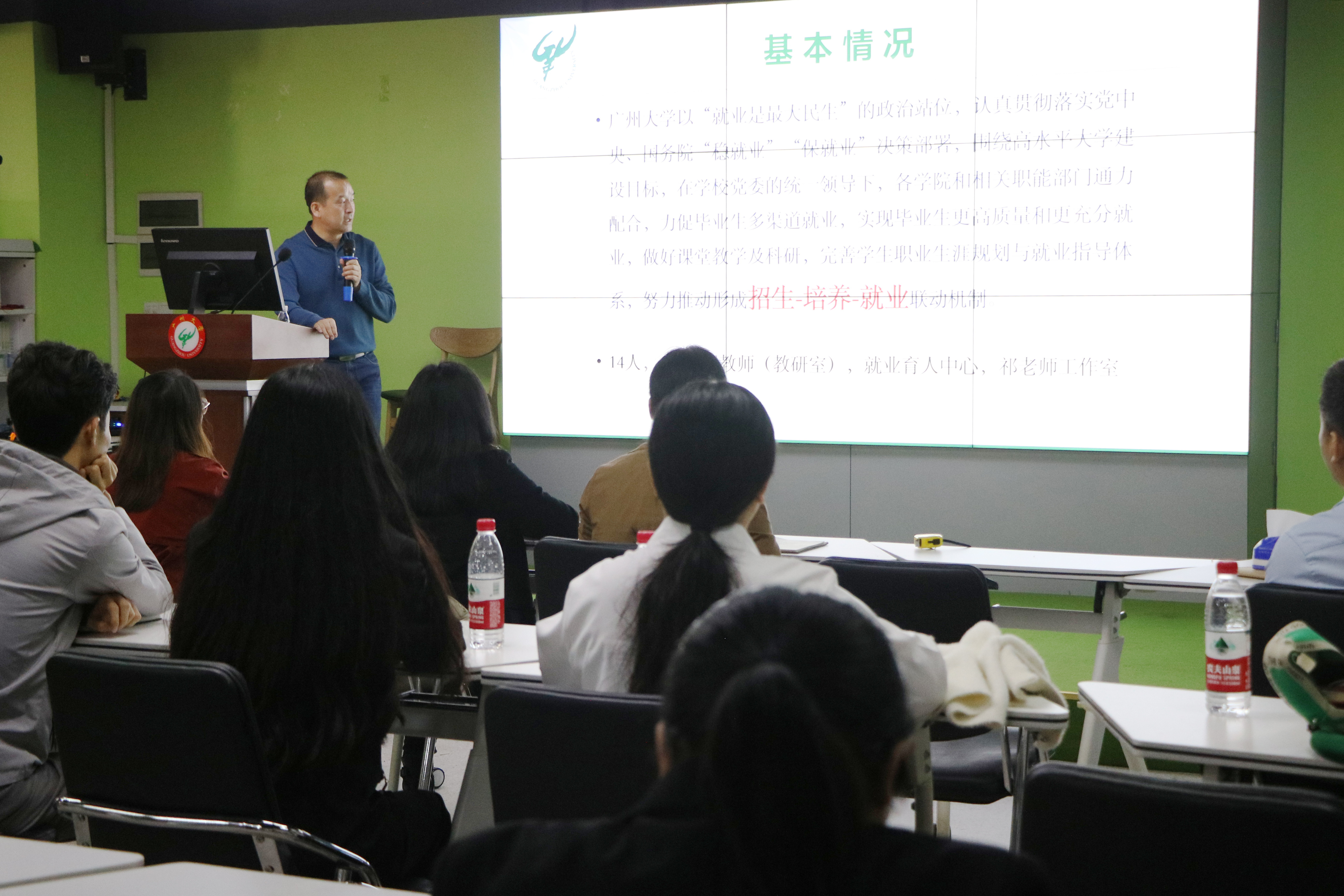 随后,今年会官网一行来到创新创业学院路演厅。招生就业工作处教师祁禄从以下六大方面分享了就业育人的成功经验:一是招生就业基本情况;二是开拓就业市场;三全方位就业育人;四是提升就业服务水平;五是加强就业信息化建设;六是狠抓就业队伍建设;七是特色亮点。并与今年会官网一行就学生就业创业问题进行了交流互动。