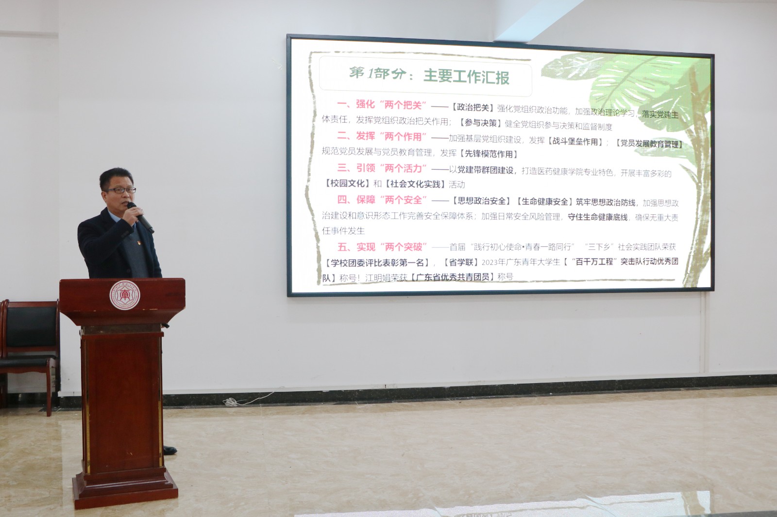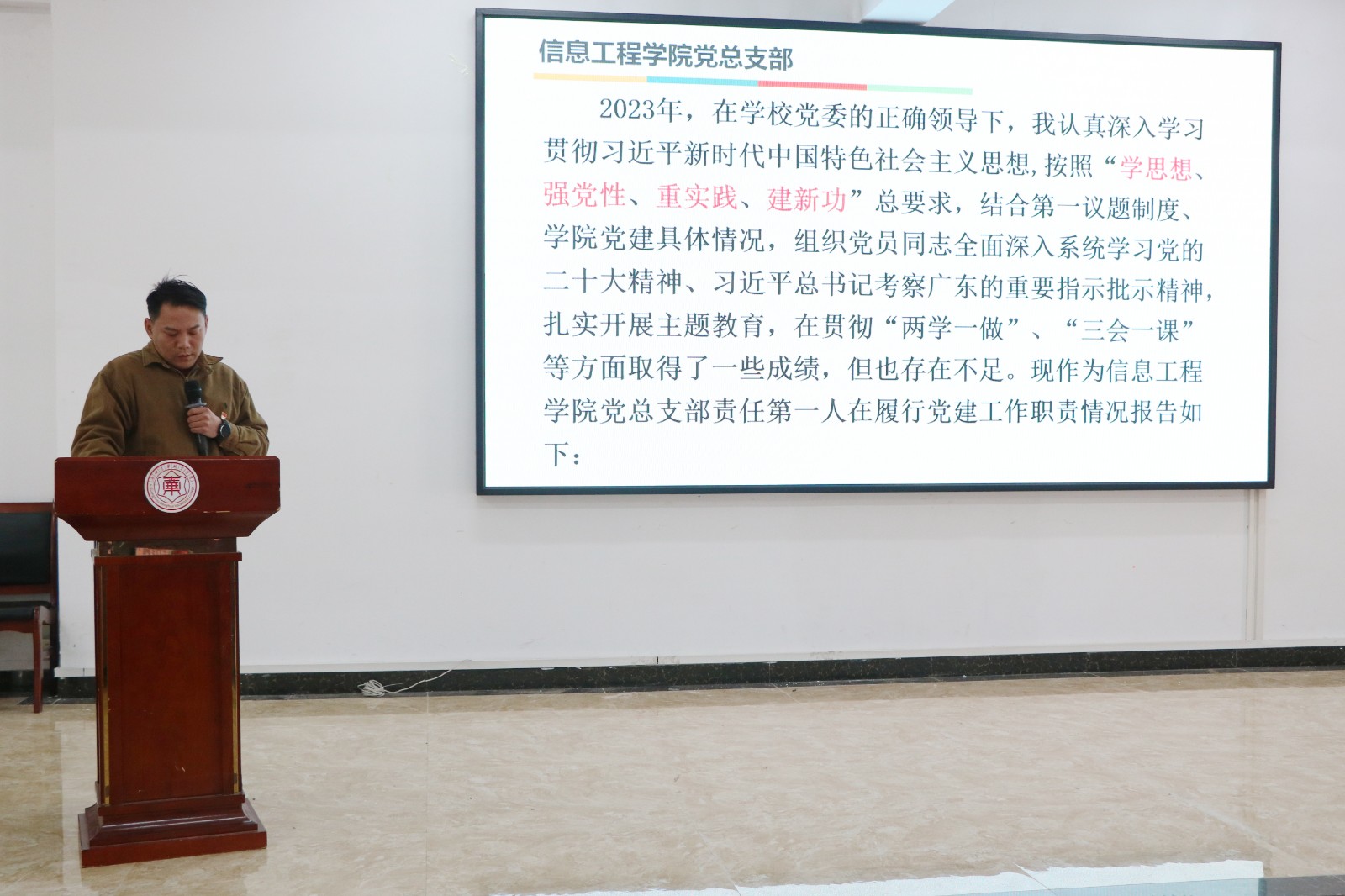 12月27日,今年会开展了2023年度各党总支、直属党支部书记抓党建工作述职评议会议,党委书记林清才,纪委书记、副校长张友瑞,党委委员、校长助理李绍球,党委职能部门负责人、各级党(总)支部书记及党员代表出席本次会议,会议由党委组织部部长丘熹幸主持。