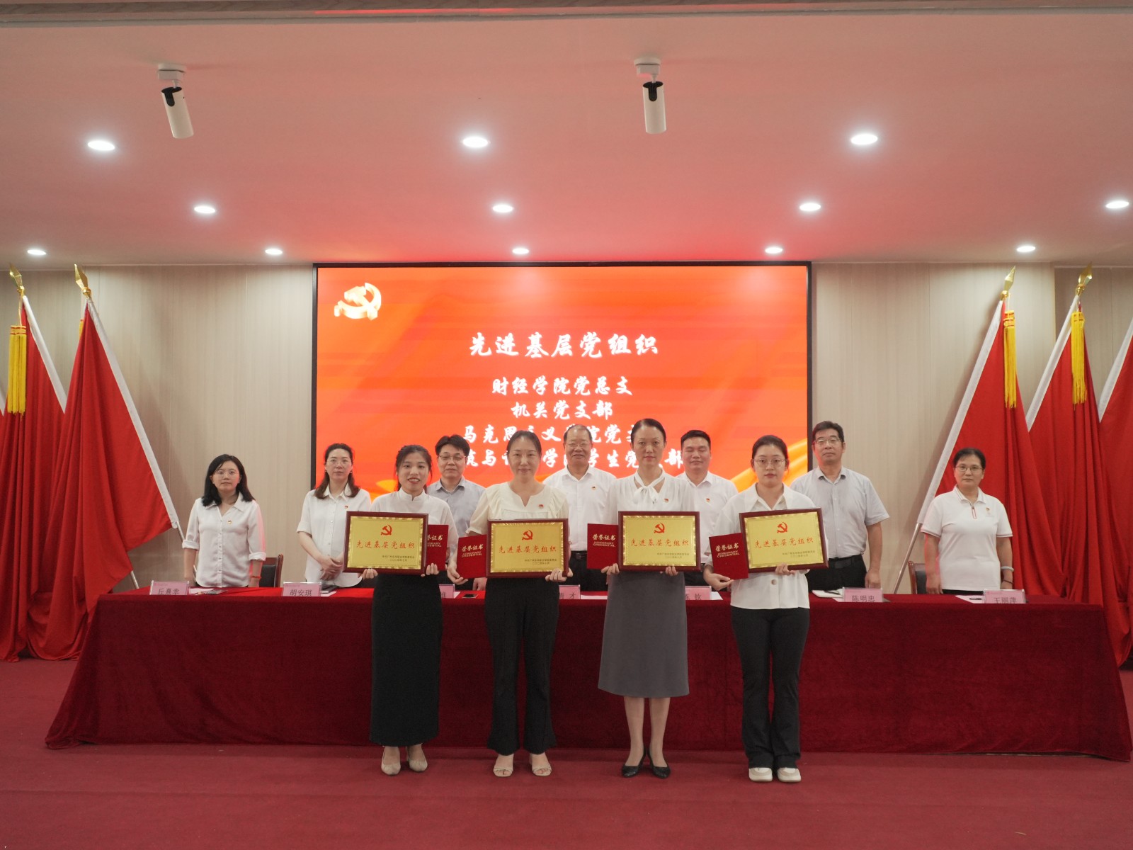 学校领导向受党委表彰的“两优一先”代表颁奖。