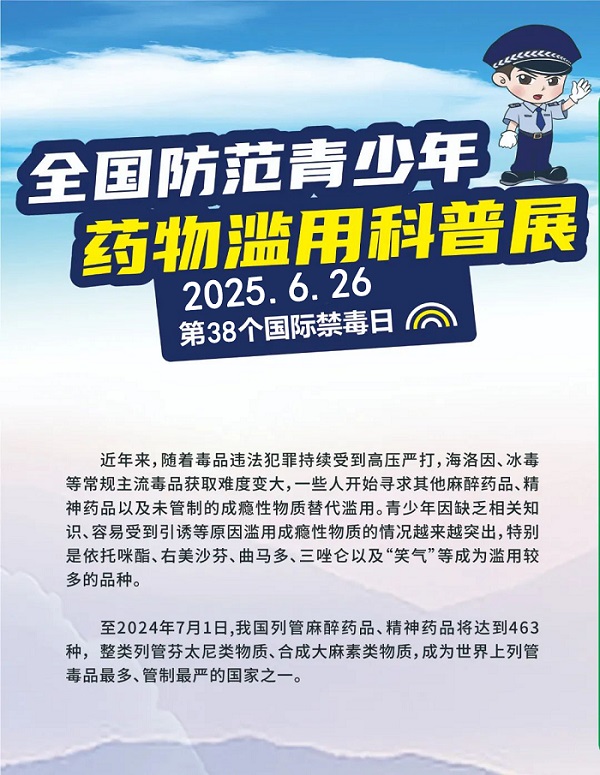 下一篇:共同守护,让青少年远离涉麻精药品等成瘾性物质滥用危害 ——致青少年、家长和社会各界的倡议书