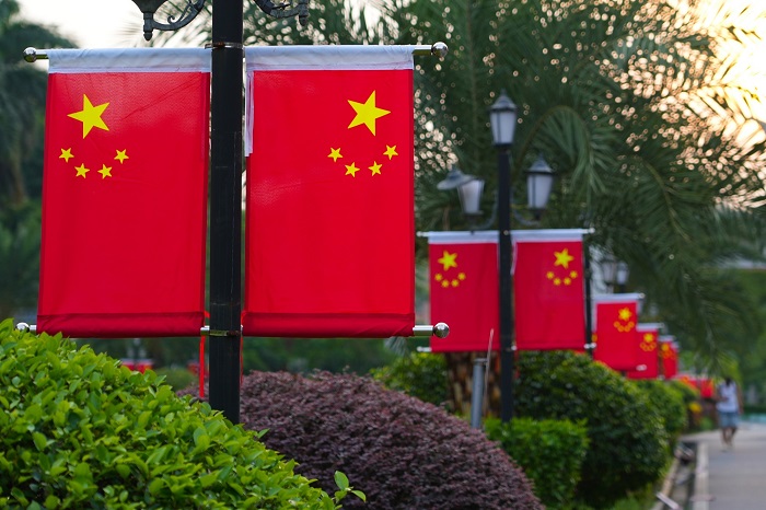 ▲路灯杆上,一面面鲜艳的五星红旗整齐悬挂,在绿意的映衬下格外夺目。红旗上的黄星熠熠生辉,似在诉说对祖国的深情。微风轻拂,红旗飘扬,为这片景致添上一抹庄重与自豪,洋溢着浓厚的爱国氛围。