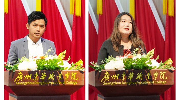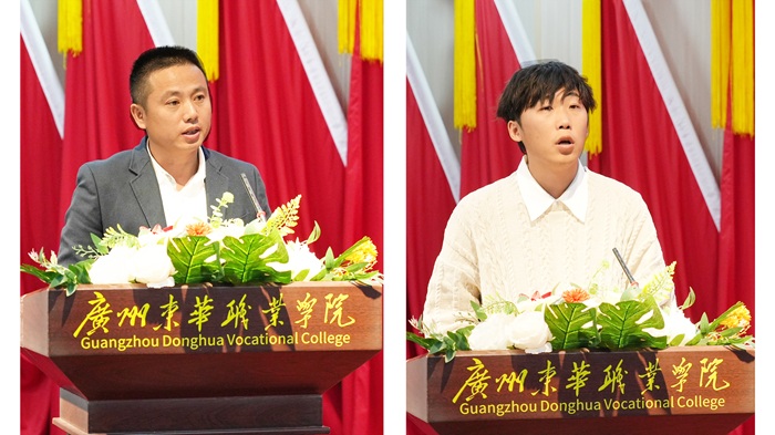 ▲智能机电学院党总支吴炜坤(左)、校团委伍恩弘(右)作经验分享