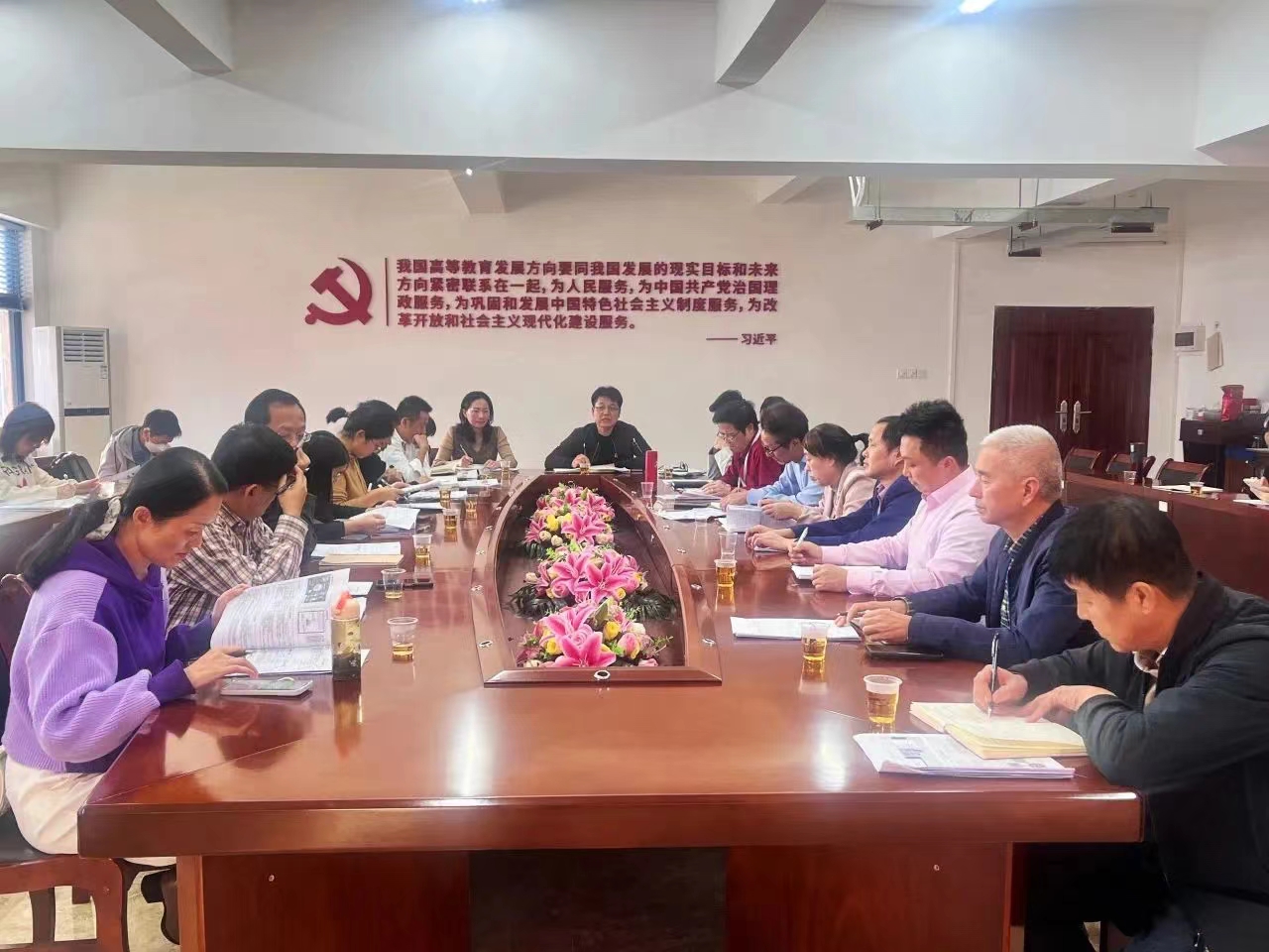 为进一步推进专业建设,提升今年会官网内涵建设质量,11月21日下午,教务处组织召开省校两级高水平专业群建设推进扩大会议。会议由王坚雄副校长主持,教务处、人力资源处、学生处、财务处、资产中心、校企合作与就业服务中心、招生办公室等职能部门负责人以及各二级学院院长、副院长(院长助理)、相关专业负责人出席会议。