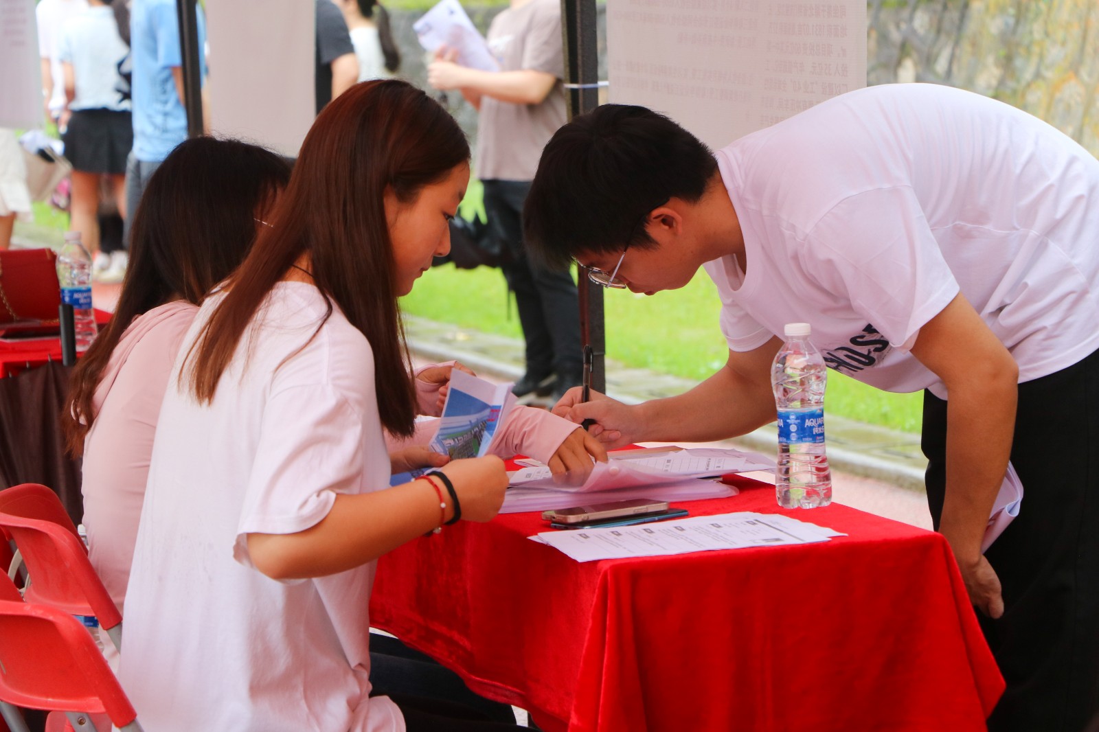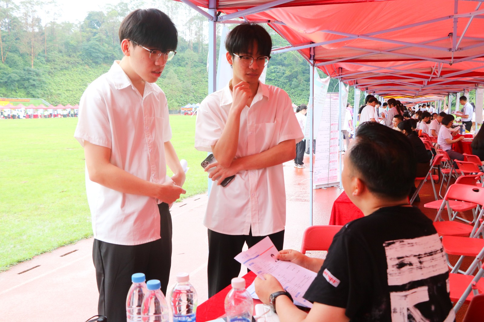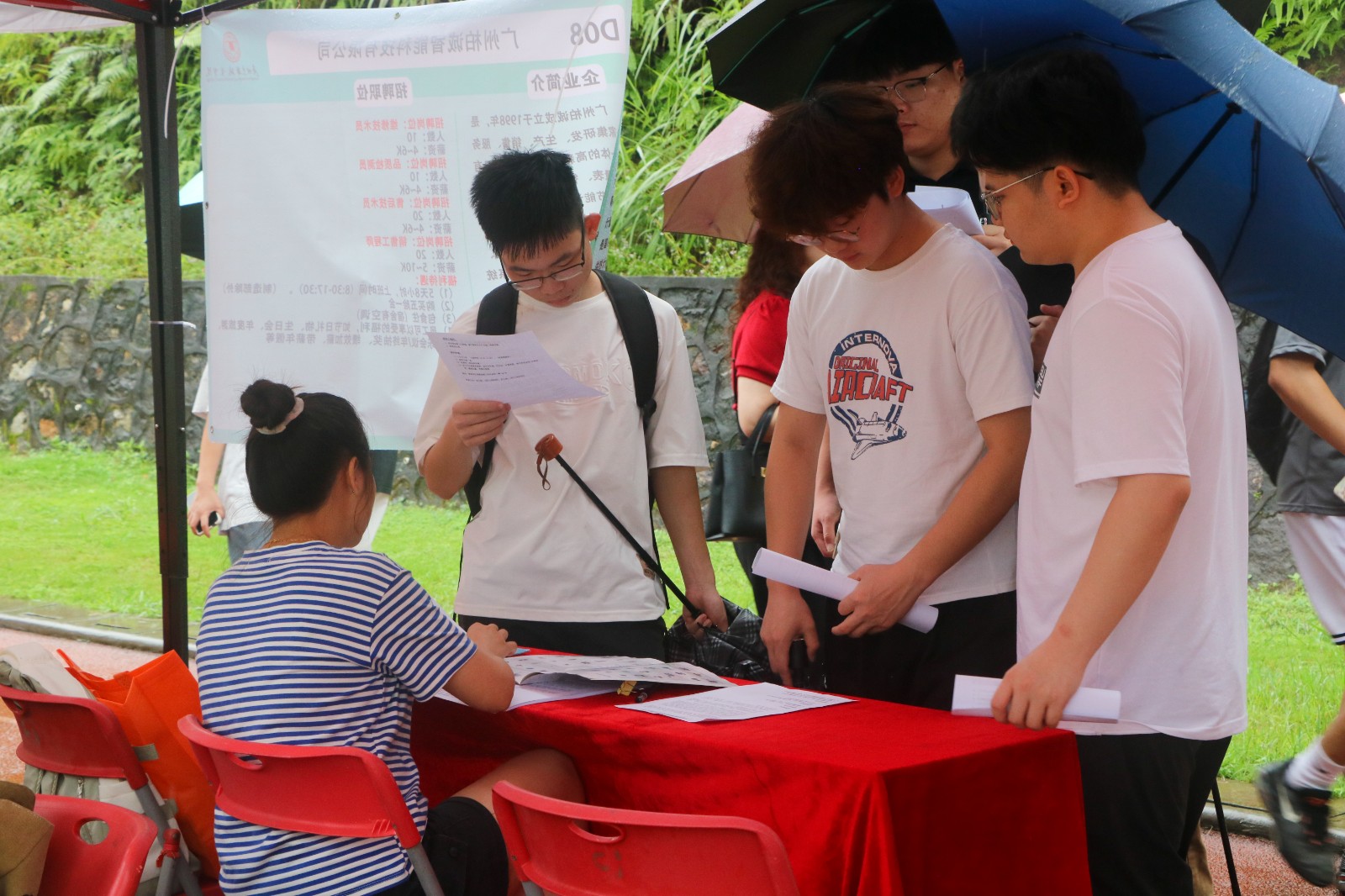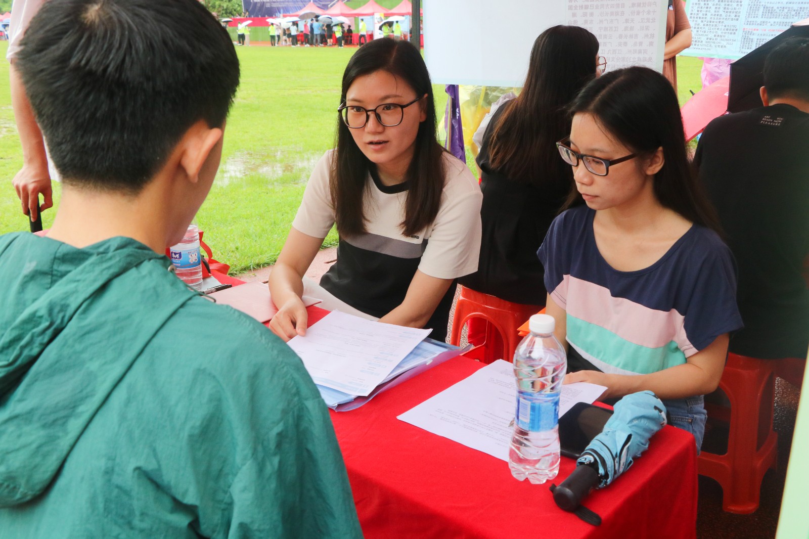 见面会现场人头攒动,各位求职学生丝毫不受阴雨天气的影响,手持简历穿梭在各展位之间,积极地向用人单位咨询岗位职责、薪资待遇、发展前景等问题。