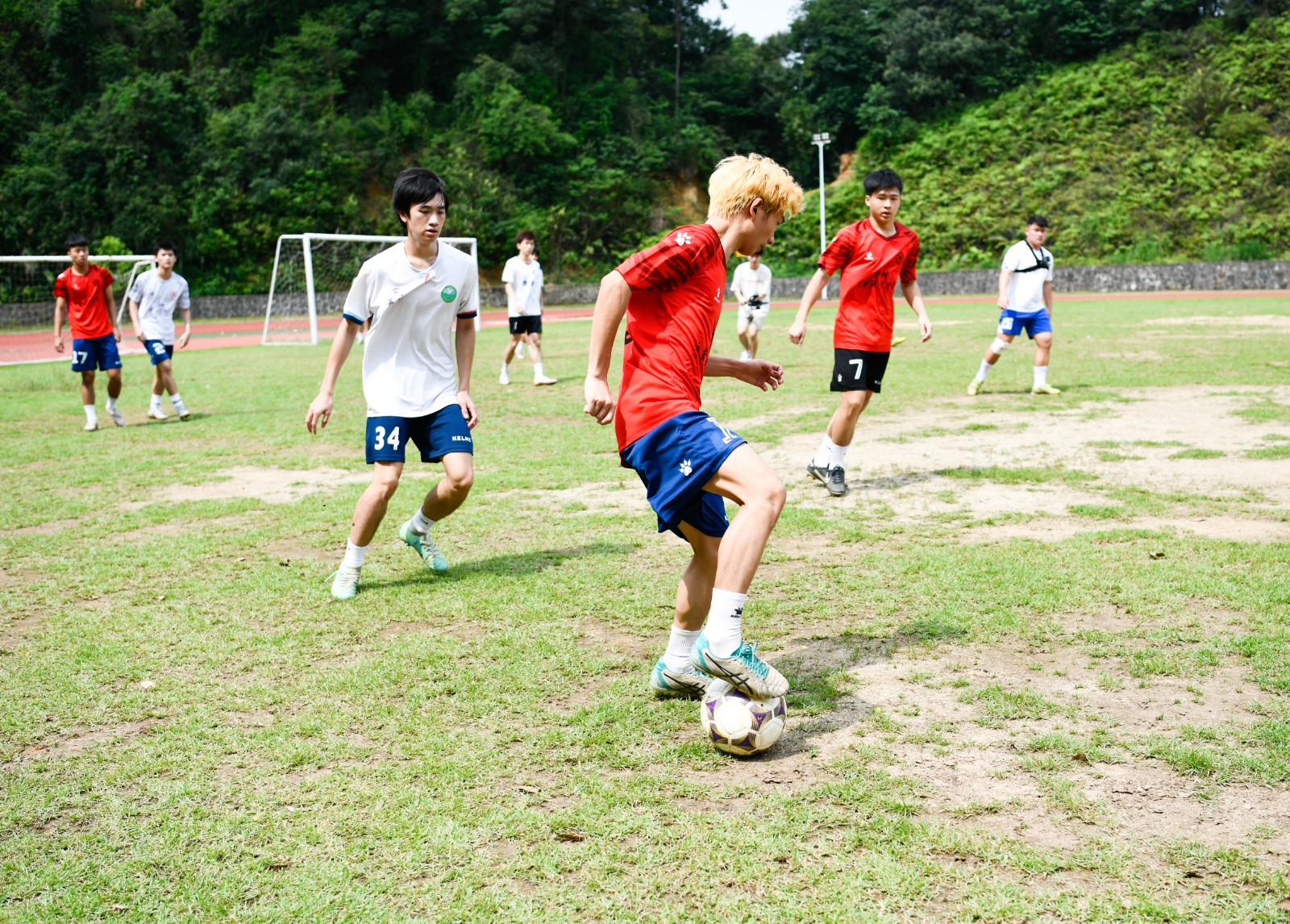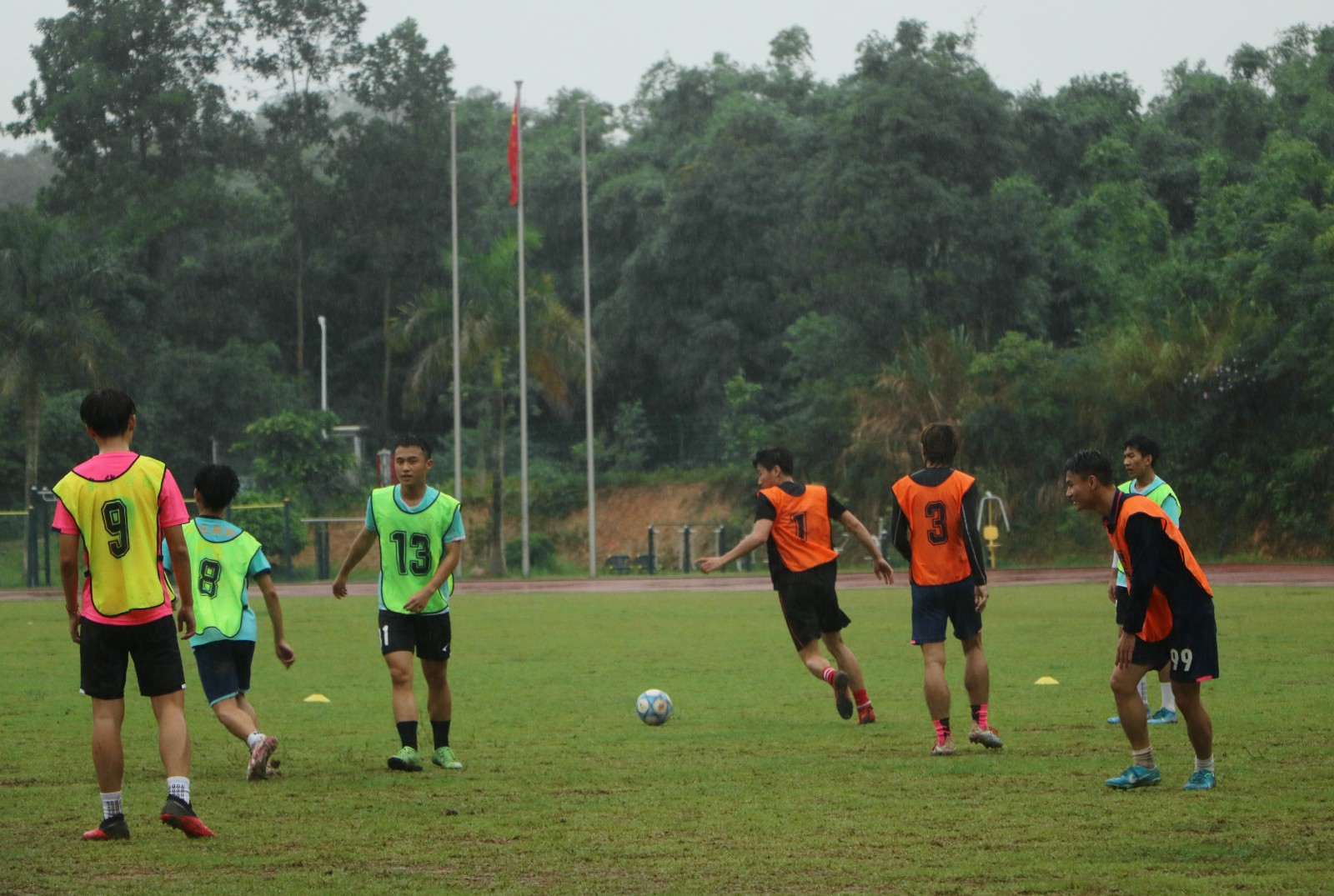 足球队的训练并不容易。基本功的磨练、技术的培养、心态的建设,都需要球员花费时间去打磨。每日17:45,足球队的成员基本都会相聚在运动场,慢跑,拉伸热身练习,核心训练,球感练习,对抗训练...绿茵草地上,踏满了他们的脚印。偶尔遇上极端天气,兴致一起,他们也会在烈日之下、暴雨之中来一场酣畅淋漓的内部比赛。呐喊,鼓气,作为东华学子,他们内心有着不屈不折的“韧劲”以及不畏艰苦的“冲劲”。