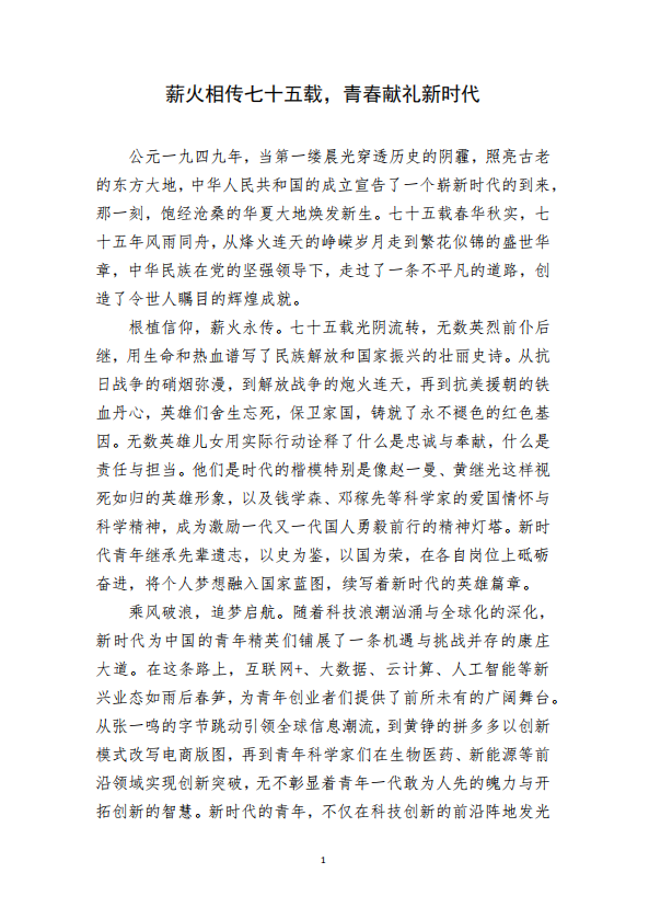 《薪火相传七十五载青春献礼新时代》