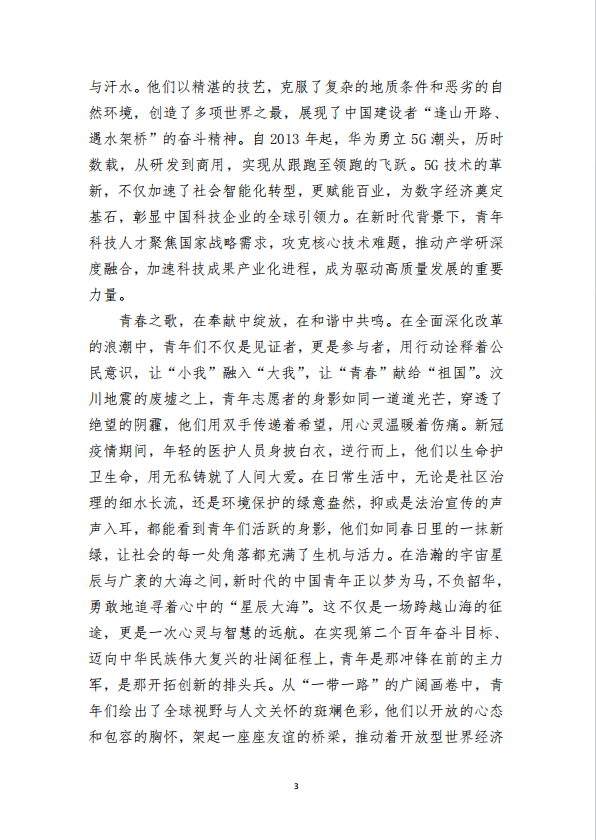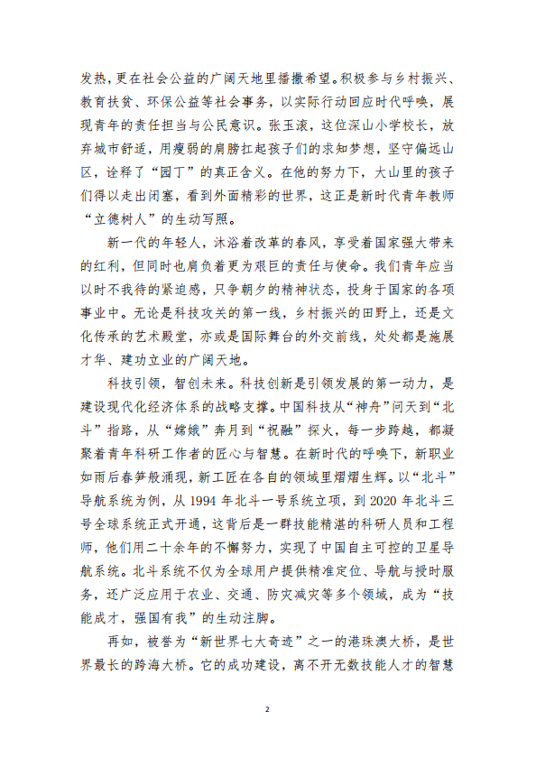 作品简介:七十五年风雨同舟,中华民族从贫穷落后、积弱积贫,一步步迈向世界舞台的中央,书写了现代化发展的壮丽篇章。文章从历史的新起点出发,呼吁新时代的青年通过技能报国,为中华民族的伟大复兴贡献力量。