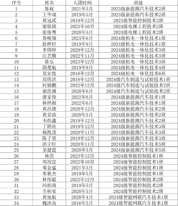 关于智能机电学院2024—2025学年第二学期拟推荐林序鑫等34位入团积极分子的公示
