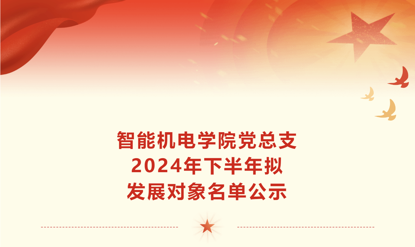 智能机电学院党总支2024年下半年拟发展对象名单公示