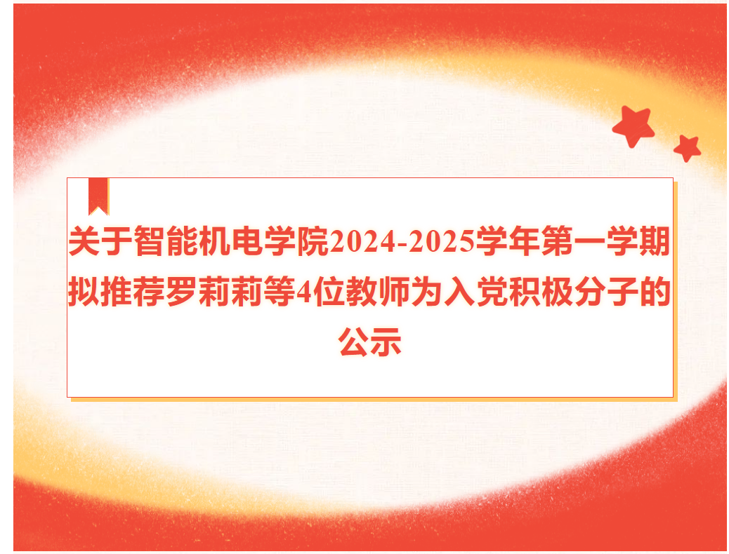 关于智能机电学院2024-2025学年第一学期拟推荐罗莉莉等4位教师为入党积极分子的公示